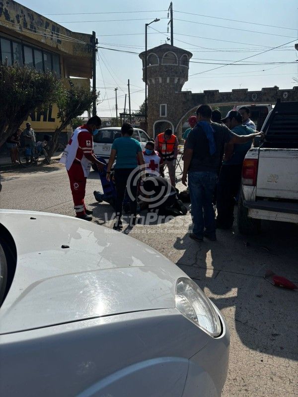 Pánuco, Ver.-Un joven que se desplazaba a gran velocidad en su motocicleta protagonizó aparatoso percance, al terminar impactandose contra una camioneta estacionada.