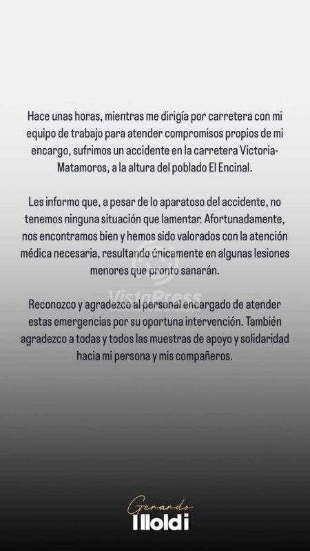El funcionario aprovechó para reconocer el trabajo del personal de emergencias que acudió al lugar y también expresó su gratitud hacia quienes le han enviado mensajes de apoyo.