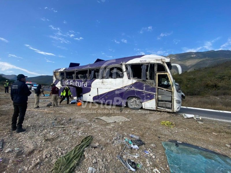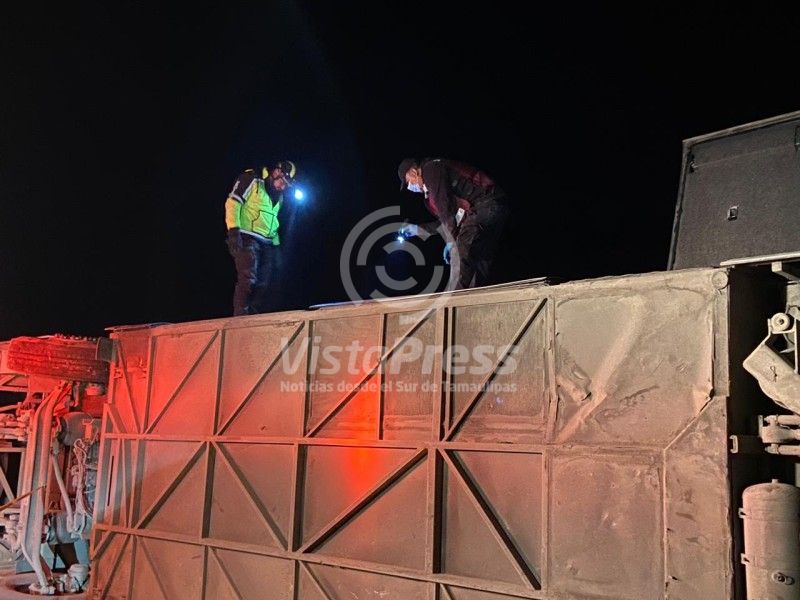 Tula, Tam.- Un accidente vial se registró la mañana de este martes en el kilómetro 97 de la carretera, donde un autobús de la línea Futura, procedente de la Ciudad de México y con destino a Matamoros, Tamaulipas, volcó sobre su costado derecho con 27 pasajeros a bordo.