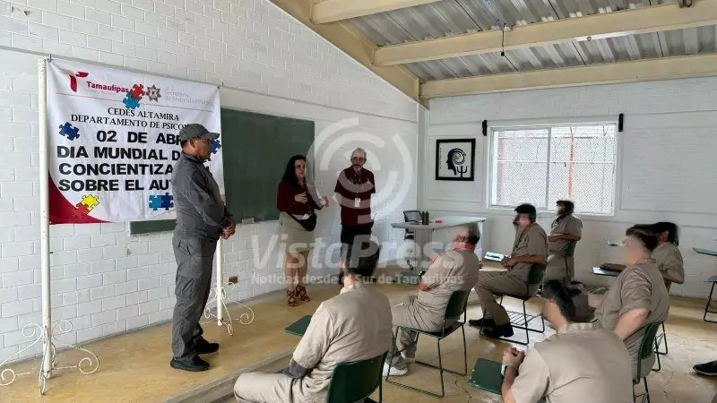 Altamira, TAM.- Con motivo del Día Internacional de la Concientización sobre Trastornos del Espectro Autista (TEA), el Departamento de Psicología del Centro de Ejecución de Sanciones (CEDES) Altamira llevó a cabo una conferencia impartida a las Personas Privadas de la Libertad (PPLs) con el fin de concientizarlos sobre este tema.