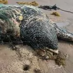 Matamoros, Tamaulipas — Un hallazgo lamentable tuvo lugar esta mañana en Playa Bagdad, al norte de Matamoros, cuando técnicos comunitarios de la organización civil Conibio Global A.C. encontraron el cuerpo sin vida de una tortuga laúd (Dermochelys coriacea) enredada en redes de pesca abandonadas.