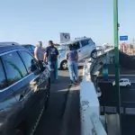 Tampico, TAM.- Con sus llantas traseras quedó un vehículo compacto tras derrapar en el puente a desnivel denominado Aeropuerto, en donde por fortuna los ocupantes sólo resultaron con golpes superficiales y crisis nerviosa.