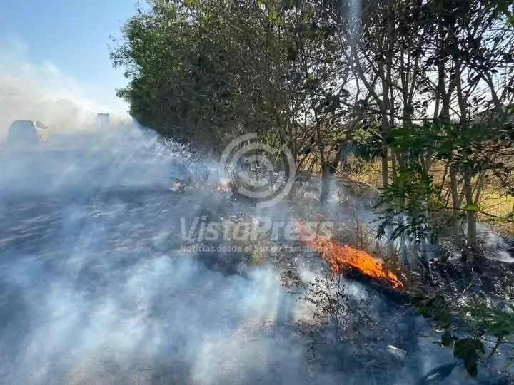 Los bomberos de inmediato intentaron controlar las llamas, que arrasaban con un extenso terreno de pastizales, alcanzando también algunos árboles, lo cual complicó demasiado la visibilidad en el tramo carretero, lo que derivó se registrara el citado percance ya que las unidades implicadas no guardaron la distancia prudente.