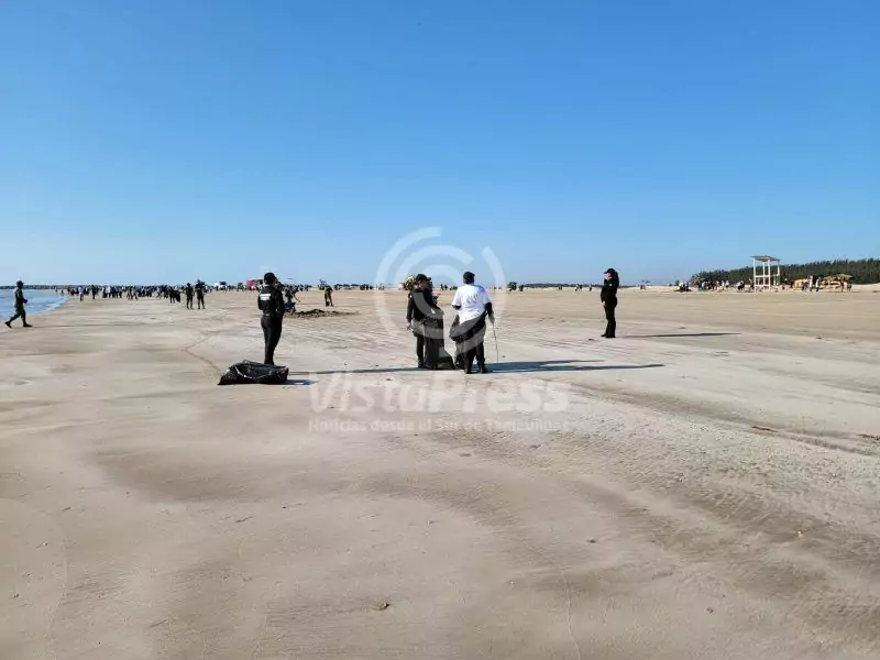 Altamira, TAM.- A unos días de celebrarse la Semana Santa, personal de la Guardia Estatal participó en ‘’Limpiazo Playa Tesoro’’, atendiendo la convocatoria del Gobierno Municipal de Altamira, en la cual, junto a autoridades del municipio, estado y federación, llevaron a cabo labores de limpieza y recolección de basura, residuos y sargazo.