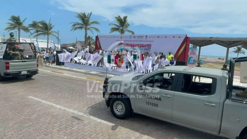 Ciudad Madero, TAM.- El presidente municipal de Ciudad Madero, Erasmo González Robledo, encabezó el banderazo de arranque del operativo de seguridad y atención al turista Semana Santa 2025 en la plaza Gobernadores de playa Miramar con la participación comprometida y activa de poco más de mil personas