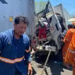 Los tripulantes del camión con caja cerrada de la empresa de lácteos, quedaron prensados entre los fierros retorcidos; por lo que fue necesaria la intervención de elementos del cuerpo de Bomberos de Tamuín, quienes realizaron labores de rescate.