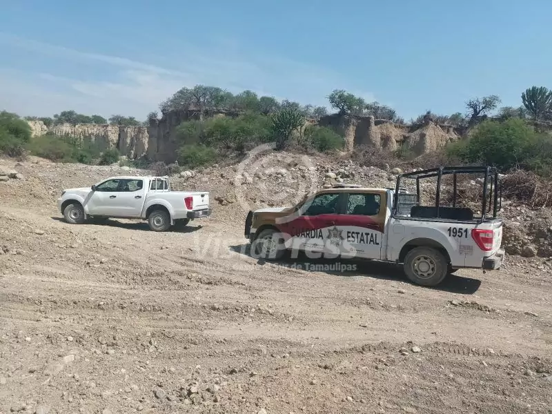 Tula, Tamaulipas.- Elementos de la Guardia Estatal brindaron apoyo al personal del Instituto Nacional de Antropología e Historia (INAH) durante el traslado de restos fósiles que presuntamente pertenecen a un mamut, hallados en una brecha que conduce al Ejido Francisco Villa, en el municipio de Tula.