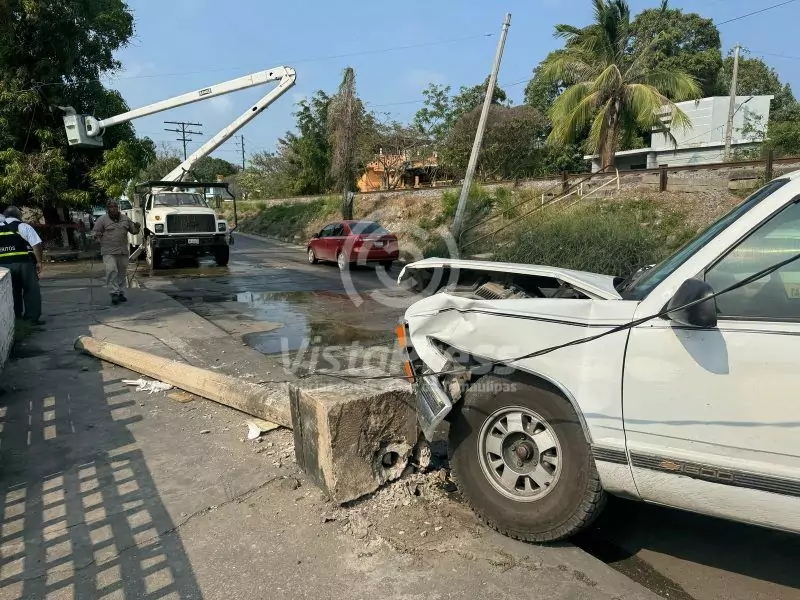 La dirección de tránsito y vialidad dijo que la camioneta Chevrolet 1500 color blanca tipo pick-up fue la que perdió el control al derrapar sobre el pavimento mojado al lugar llegaron personal de bomberos y poco después cuadrillas de la CFE que iniciaron los trabajos para reparar el desperfecto que dejó sin luz a varias manzanas.