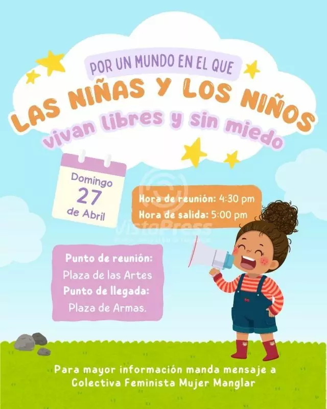 Tampico, TAM.- Este domingo 27 de abril se realizará en Tampico una caminata denominada “Por un mundo en que las niñas y los niños vivan libres y sin miedo”, por lo que están convocando a la sociedad en general a sumarse por parte de la Coletiva Mujer Manglar.