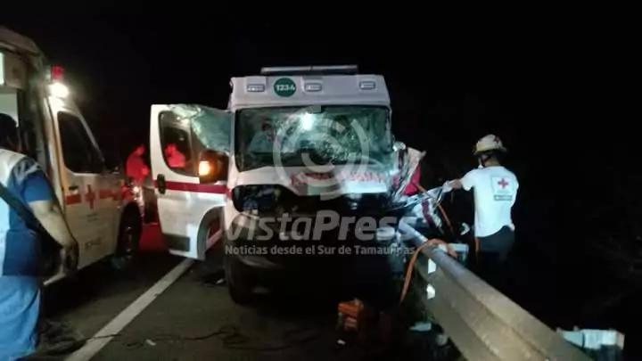 Debido al fuerte encontronazo los tripulantes de la ambulancia, el chófer, y un paramédico, quedaron prensados de las piernas y fueron rescatados con equipo hidráulico del grupo de rescate urbano de la Cruz Roja de ciudad Valles.