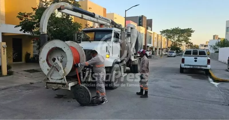 Dando respuesta a los reportes ciudadanos, la Comisión Municipal de Agua Potable y Alcantarillado de Altamira atendió de manera expedita problemas de drenaje en distintas colonias y conjuntos habitacionales de esta ciudad mediante acciones de sondeo, limpieza, y mantenimiento de líneas y tuberías de desagüe.