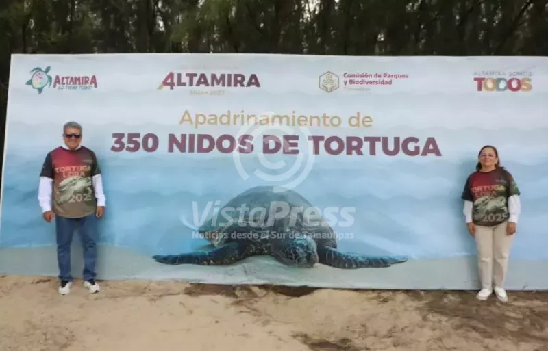 En un esfuerzo por fortalecer la conservación ambiental y avanzar hacia un Altamira más sostenible, el alcalde Dr. Armando Martínez Manríquez apadrinó, junto a su esposa, la presidenta del DIF Municipal, Rossy Luque de Martínez, un total de 350 nidos de tortuga lora en Playa Tesoro, lo que representa la protección de más de 40 mil crías de esta especie en peligro de extinción.