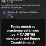 Como Mario Enrique Martínez, ha sido identificado el cadete, quien una vez en tierra tras haber sido atendido médicamente en el lugar del accidente, minutos más tarde pudo postear en sus cuentas personales, “Gracias a todos por preocuparse, estoy bien gracias a dios. Les pido únicamente sus oraciones”.