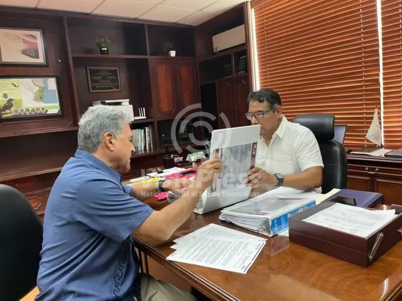 El presidente municipal de Altamira, Dr. Armando Martínez Manríquez, sostuvo una reunión de trabajo con el ingeniero Mario Mata Reséndiz, titular de la Secretaría de Infraestructura, Comunicaciones y Transportes (SICT) en Tamaulipas, con el objetivo de gestionar la mejora del alumbrado en el tramo carretero que conecta el centro de Altamira con Villa Cuauhtémoc.