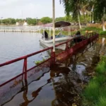 Altamira, Tam.- En el transcurso de un día, el nivel del sistema lagunario lagunario descendió 26 centímetros; sin embargo, aún permanece desbordada la laguna.