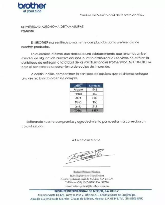 Asimismo, en el mes de enero, el empresario empezó con la desesperación, toda vez que con antelación, Marcos «Q» le había hecho firmar un contrato con la empresa Brother por la garantía de los servicios que iba a prestar a la UAT.