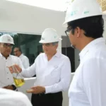 Altamira, Tamaulipas.- El gobernador Américo Villarreal Anaya efectuó un recorrido por las instalaciones de la planta de la empresa Green Bauen, filial del Grupo Industrial Águila, en la cual se procesan desechos plásticos permitiendo la generación de queroseno, parafinas, gasolina y diesel, utilizando tecnología cien por ciento tamaulipeca.