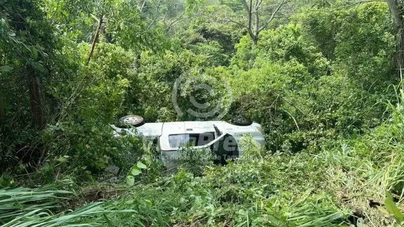 Ciudad Valles, S.L.P. – Los tripulantes de una camioneta que se pronunció contra un barranco, vivieron de milagro, ya que por fortuna solo resultaron lesiones menores.