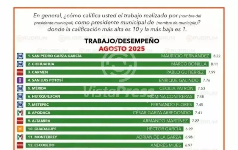 Así lo confirma una reciente encuesta realizada por la firma nacional RUBRUM, que posiciona al gobierno municipal como el mejor evaluado del estado.