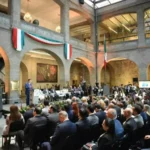 En la antigua Casona de Xicoténcatl, sede anterior del Senado de la República, el senador Noroña expuso los desafíos que el país enfrenta en un escenario internacional complejo, así como su trabajo para promover la unidad del movimiento y los partidos políticos aliados de la cuarta transformación, Morena, PT y PVEM.