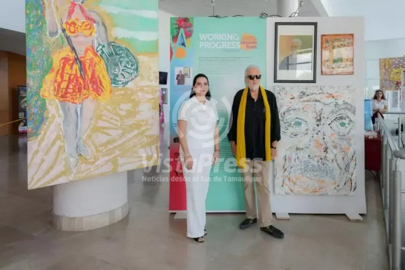 La Presidenta municipal, Mónica Villarreal, acompañada del artista Edmundo Font, presentó la monumental exposición pictórica «Working Progress» del también escritor y diplomático tampiqueño.