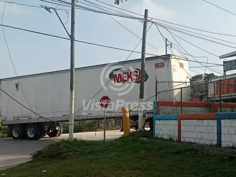 Pueblo Viejo, Ver.-Un tráiler de doble remolque, a punto estuvo de proyectarse contra un jardín de niños, en el siempre escenario de accidentes automovilísticos como lo es el libramiento fray Andrés de Olmos.