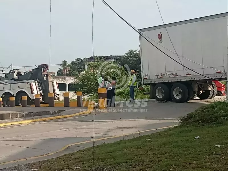 Derivado de la volcadura, una de las cajas del vehículo de grandes dimensiones, derribó un poste de cemento propiedad de la Comisión Federal de Electricidad, lo que provocó que un importante sector de Pueblo Viejo se quedará sin energía eléctrica.