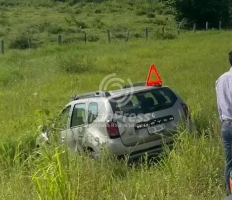 Al llegar al sitio del percance, se ubicó una camioneta de la marca Renault tipo Duster color arena fuera del camino.