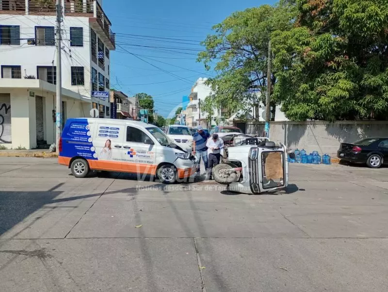 Ciudad Madero, Tam.- La tarde de este miércoles se registró un fuerte choque con volcadura en la intersección de las calles Sarabia y Cinco de Mayo, lo que movilizó a los cuerpos de emergencia de Ciudad Madero.