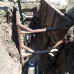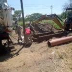 En la calle C-7 Poniente, entre C-2 y C-4, en el Fraccionamiento Corredor Industrial, personal técnico especializado del organismo realizó en tiempo y forma el reemplazo de un colector de pvc alcantarillado de 16 pulgadas.