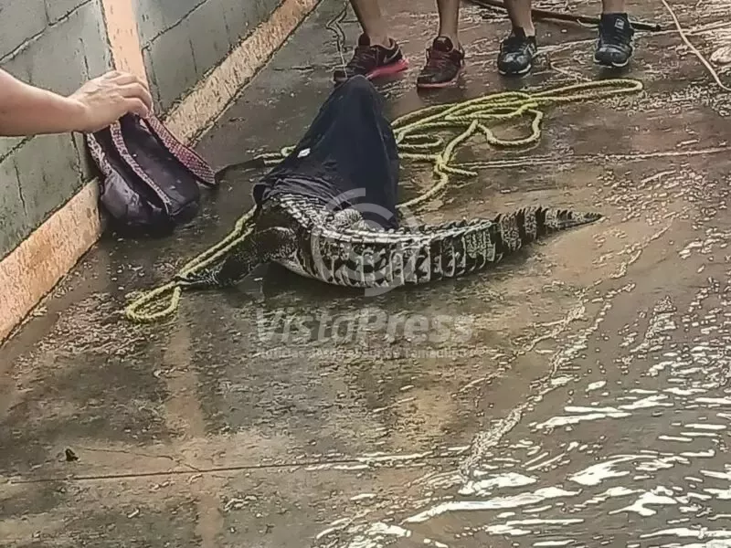 Armados únicamente con un mecate y un trapo, varios vecinos decidieron actuar de inmediato y, tras una tensa maniobra, lograron someter al reptil para evitar que causara algún incidente.