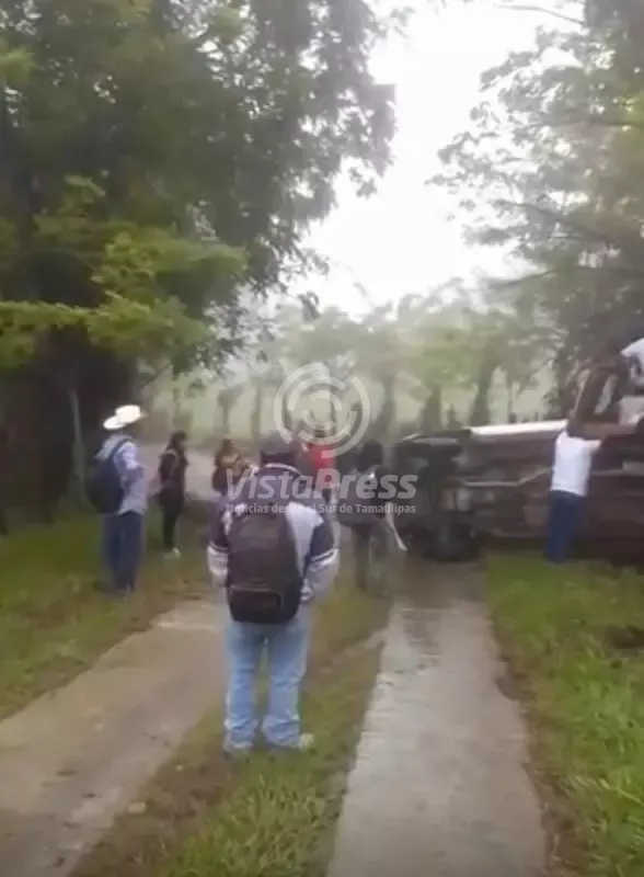 Chicontepec, Ver. -Una camioneta de transporte mixto rural, terminó por volcarse, dejando elevados daños materiales.