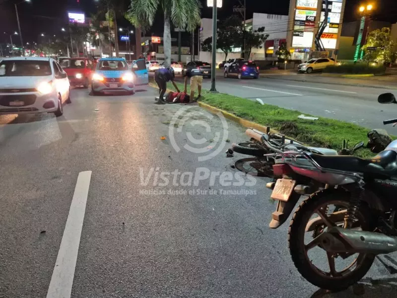 La tarde de este miércoles se registró un accidente vial sobre la Avenida Hidalgo, a la altura de Cinépolis, en dirección Tampico–Altamira, donde una motocicleta y un vehículo March se vieron involucrados en un fuerte percance.
