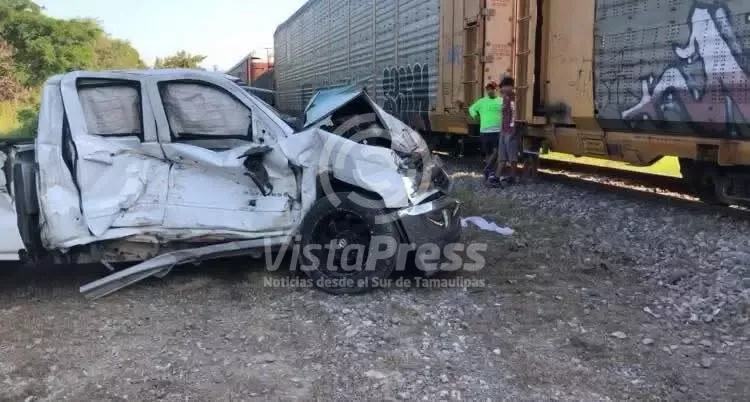Altamira, Tam.— Una camioneta doble cabina quedó reducida a chatarra tras ser embestida por un tren carguero en el poblado Villa Cuauhtémoc, en el municipio de Altamira.