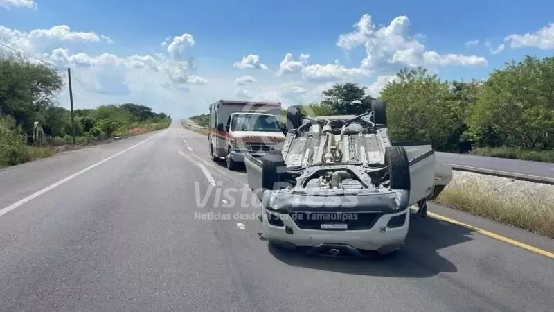 Tamuín; S.L.P.-Una camioneta termino llantas arriba, sobre la Carretera Valles – Tampico.