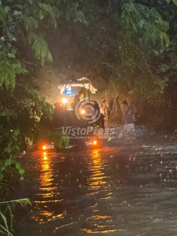 Tampico Alto, Ver.-Elementos de Protección Civil Municipal, en coordinación con el Ejército Mexicano, rescataron a una familia que era arrastrada por la corriente en la comunidad El Llano de Bustos, a la altura del kilómetro 75.