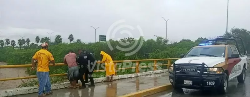 Al arribar al puente de la colonia Moderna, elementos de esta corporación visualizaron a la persona dentro del cauce del río agarrado de un árbol.