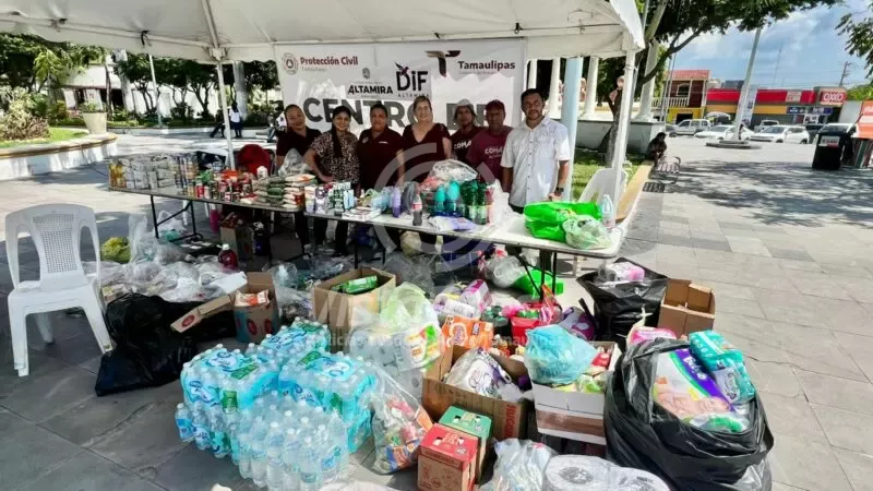 Los víveres y productos de limpieza e higiene personal fueron llevados al centro de acopio instalado en la plaza Constitución por el Gobierno Municipal, que encabeza el Dr. Armando Martínez Manríquez, y el Sistema DIF Altamira, que preside la C.P. Rossy Luque de Martínez, para su posterior envío a las familias norveracruzanas afectadas por la contingencia.