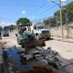 Las labores se realizan sobre la calle Félix de Jesús, entre Loma de Oro y Loma Azul, donde se sustituirán 105 metros lineales de tubería de 8 pulgadas por una nueva línea de 12 pulgadas de mayor calidad y resistencia, lo que permitirá optimizar el funcionamiento del sistema y evitar escurrimientos de aguas residuales en el sector.