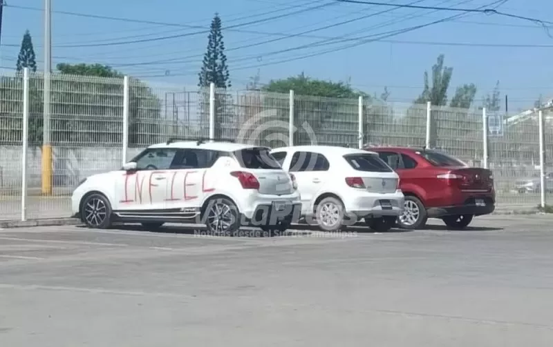 Tampico, Tam.– Un automovilista fue exhibido públicamente por su pareja, quien decidió “vengarse” rayando con pintura roja la palabra “INFIEL” en ambos costados de su vehículo blanco de reciente modelo.