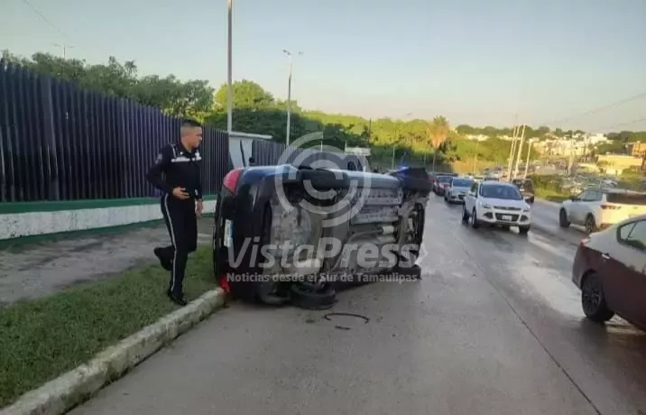 La unidad accidentada, un Chevrolet Aveo color negro con placas tamaulipecas, quedó volcado sobre su costado izquierdo, provocando una severa crisis nerviosa en ambas tripulantes, quienes afortunadamente no presentaron lesiones graves y fueron atendidas en el lugar.