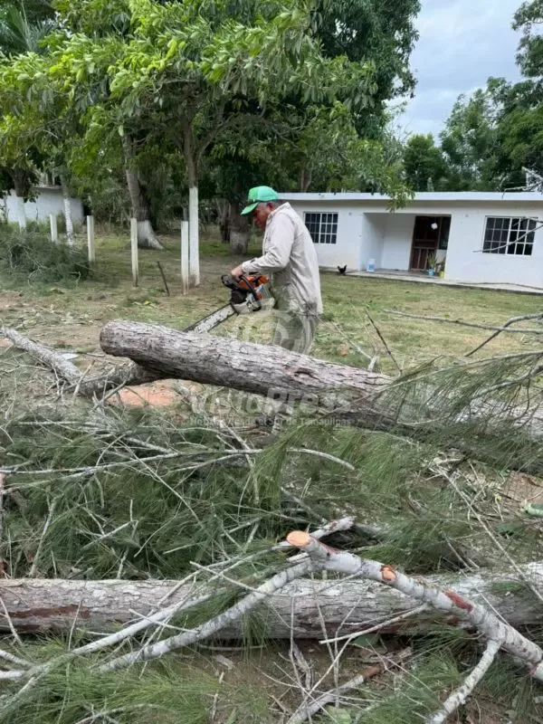 Puntualizó que en la Brecha Huasteca en el poblado Kilómetro 100, fueron atendidos los reportes de caída de árboles, y así mismo los sotos fueron retirados.