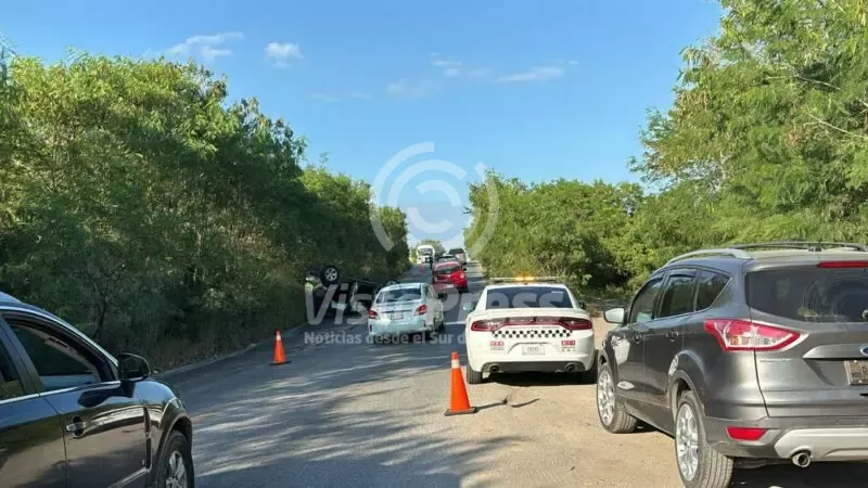 Pánuco, Ver.-Un muchacho de 20 años de edad, que guiaba un auto compacto a exceso de velocidad, terminó pasando una experiencia de terror la tarde de este martes al volcar de forma aparatosa, terminando su unidad llantas arriba resultando ileso, no asi otro joven que le acompañaba.