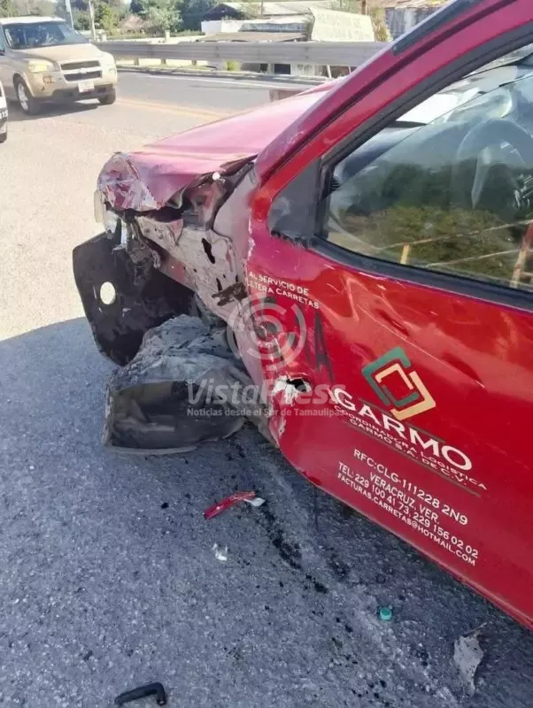 La mañana de este miércoles, la alcaldesa de Soto la Marina, Glynnis Jiménez Vázquez, protagonizó un aparatoso accidente vial sobre el conocido Puente del Río, en un hecho que por poco termina en tragedia.