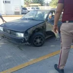 El accidente ocurrió sobre la calle Francisco I. Madero, en su cruce con la avenida Monterrey, justo en la zona de las vías del tren. De acuerdo con los primeros reportes, los tripulantes de la motocicleta circulaban presuntamente a exceso de velocidad y, al intentar cruzar las vías férreas, el conductor perdió el control, impactándose de frente contra el Tsuru de color negro.