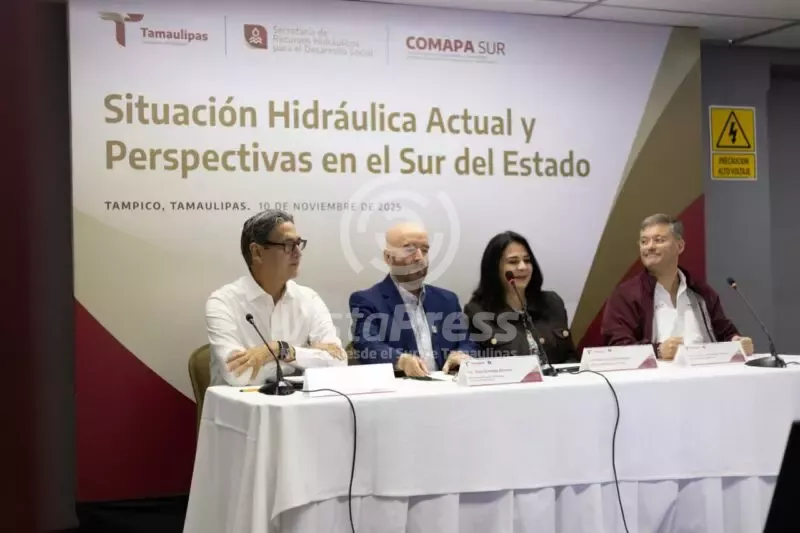 El encuentro fue encabezado por el secretario de Recursos Hidráulicos para el Desarrollo Social, Ing. Raúl Quiroga Álvarez, y el gerente general de COMAPA SUR, Mtro. Francisco José González Casanova, acompañados por los alcaldes de Tampico, Mónica Villarreal Anaya, y de Ciudad Madero, Erasmo González Robledo.