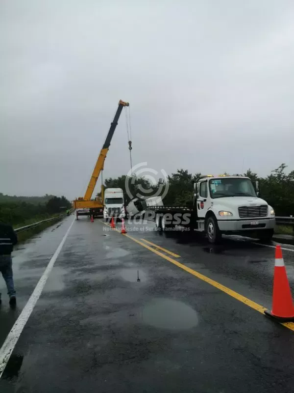 Los hechos acontecieron a temprana hora de hoy, a la altura del kilómetro 012 + 000 de la autopista Tuxpan – Tampico en el tramo carretero Tuxpan – Naranjos, lugar donde el conductor de un tractocamión pierde el control del volante y terminó por salirse de la carpeta de rodamiento.