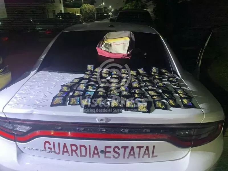 Matamoros, Tamaulipas.- Derivado del seguimiento a un ciudadano que emprendió la huida al percatarse de la presencia del personal de la Guardia Estatal en la colonia Campestre Del Río del municipio de Matamoros, se aseguraron 109 bolsas con narcóticos.
