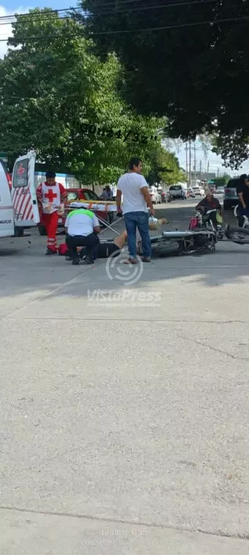En ese punto se dio la fuerte colisión entre un vehículo compacto y una motocicleta tripulada por una joven, la cual terminó tendida sobre el pavimento.