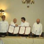 Durante la reunión de trabajo en el Club de Industriales de Tampico, junto con el secretario de Recursos Hidráulicos, Raúl Quiroga; el secretario general de Gobierno, Héctor Joel Villegas; la presidenta municipal de Tampico, Mónica Villarreal Anaya, y el alcalde de Madero, Erasmo González Robledo, Villarreal Anaya firmó el convenio específico de colaboración entre el Gobierno de Tamaulipas y la Asociación de Industriales del Sur de Tamaulipas.